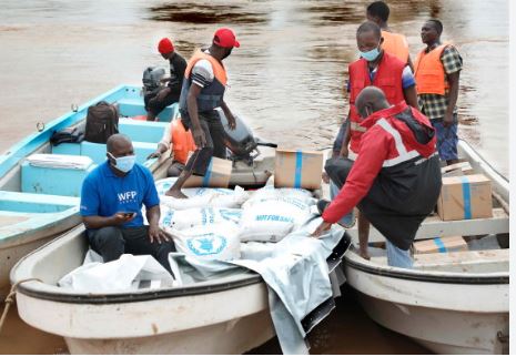 Kenyan government distributes food aid to people displaced by floods