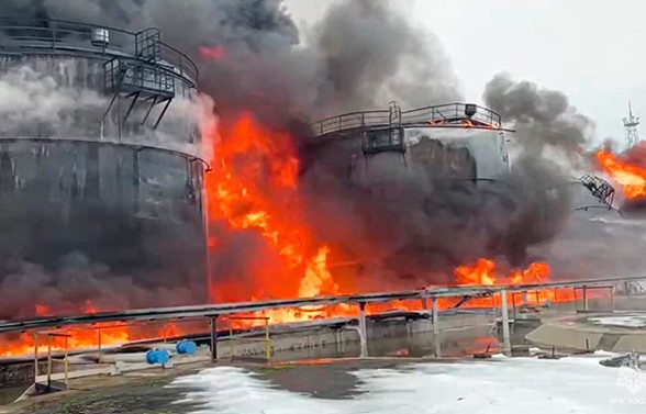 Ukrainian Drone Strike Sparks Fire at Russian Oil Refinery